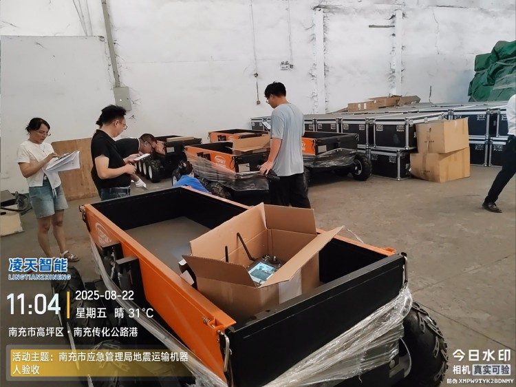 在军队营地、大型赛事场馆、建筑工地等场景,机器人可跟随保障人员输送餐饮、饮用水、装备配件等物资,适应户外复杂地形,在极端天气下也能稳定运行,保障后勤供给的连续。
