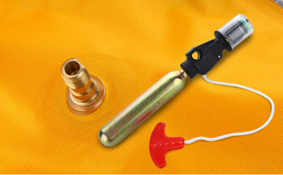 手动款:只能手动拉动拉绳才能激发装置充气,手动拉动时,将二氧化碳钢瓶高压释放,3-5秒内充气整个气囊。