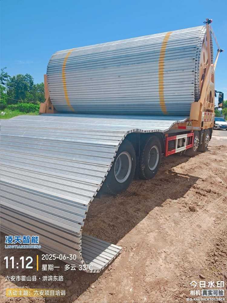 应急机动路面是一种专为临时路面需求设计的特殊装备,主要用于在沙滩、泥泞、雪地、沼泽等低承载能力的地段快速铺设临时活动路面,以保障轮式或履带式装备的顺利通过;路面材料通常为铝合金材料,具有轻便、快速铺设和撤收的特点。在抢险救灾任务中,应急硬质机动路面车可在低承载能力路段快速铺设,如沙滩、泥泞、沼泽等,为重型装备提供通过条件。在应对突发汛情、险情时,能够迅速提供救援通道,提高应急处置能力。