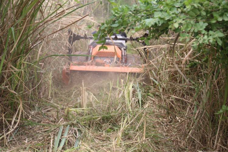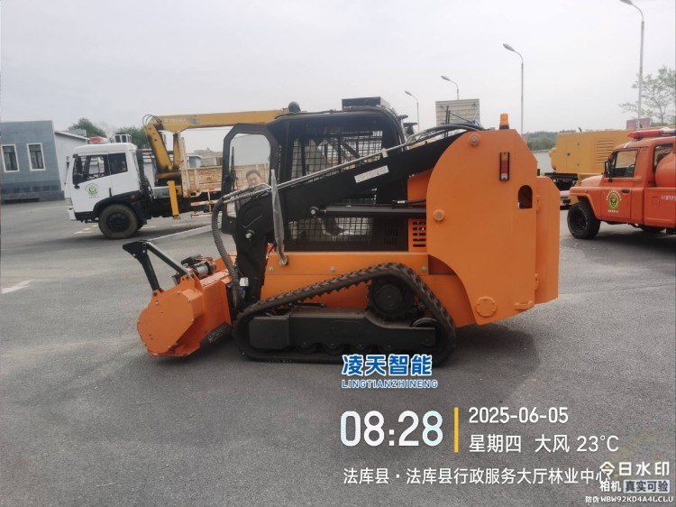 森林隔离带开辟车是由隔离带开辟机模块、大型钝刀式切削模块、重型林木抓斗、铲斗、快换机构、履带式行走机构、臂架举升装置、驾驶室、电气液压系统和无线遥控器组成。设备应采用双三角形履带式行走机构,具备建造防火隔离带的能力,可粉碎树 木、灌木、草等各种可燃性植物,能在茂密的树林、灌木林、草原中迅速开辟防火隔离带。可粉碎的树木直径≥ 250mm,连续粉碎时可粉碎的树木直径≥80mm,可粉碎的树木、灌木和草的高度没有限制。在山地林区开辟防火隔离带、维护防火通道、开辟临时救援通道、建立安全岛、辅助清理火场、开设生土隔离带等应急救援任务。