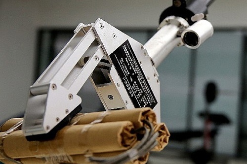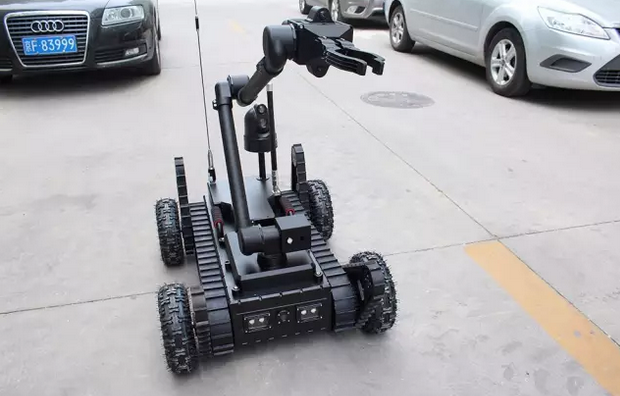 机械臂部分配备爆炸物销毁器、瞄准器,能现场对爆炸物进行摧毁;