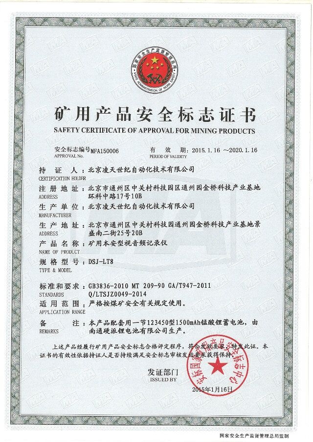 北京凌天防爆执法记录仪取得3c强制性认证、化工防爆、煤矿防爆、MA