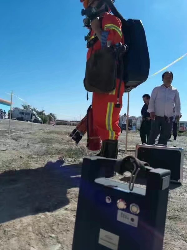 该装置采用无线连接方式的信号中继与传输,应急通信网络的通信距离可达20公里。无线通信网络采用自组织、自愈合方式快速形成多跳链状或网状网拓扑结构,无线通信距离不小于2000米,具有快速部署、高带宽、低时延、可靠性强等特点。井下救援人员或工作人员,通过佩戴矿用本安型平板计算机、配套的低照度摄像头自带语音通话、无线中继器、多参数测定仪等装备,将现场的实时图像、语音、环境参数等信息实时回传到指挥平台,调度指挥人员可以实时了解现场情况,并对现场人员进行调度指挥。
