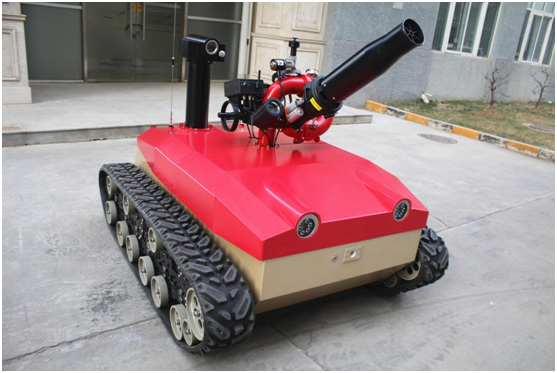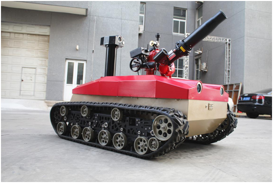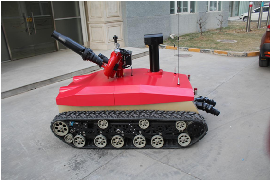 防爆消防灭火侦察机器人采用耐高温履带避震式底盘设计,能够适应救援环境中各种复杂地面。装配环境检测装置,在灭火的同时对现场环境数据进行侦测。机器人由机器人主体,消防炮,环境检测装置,遥控箱四部分组成。主要作用是代替消防队员进入易燃易爆、有毒、缺氧、浓烟等危险灾害事故现场实施有效的灭火救援、化学检测和火场侦察。
