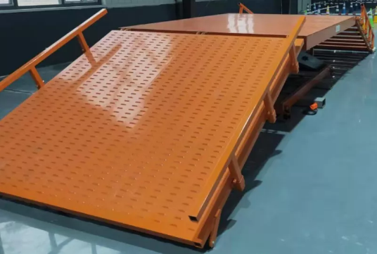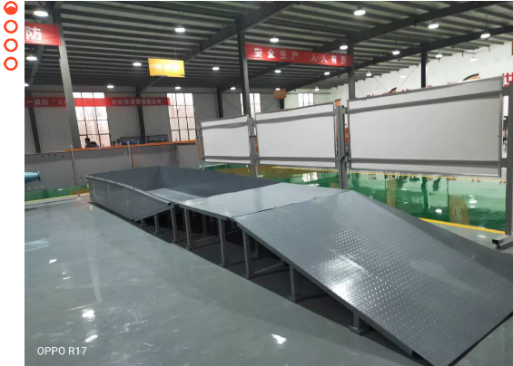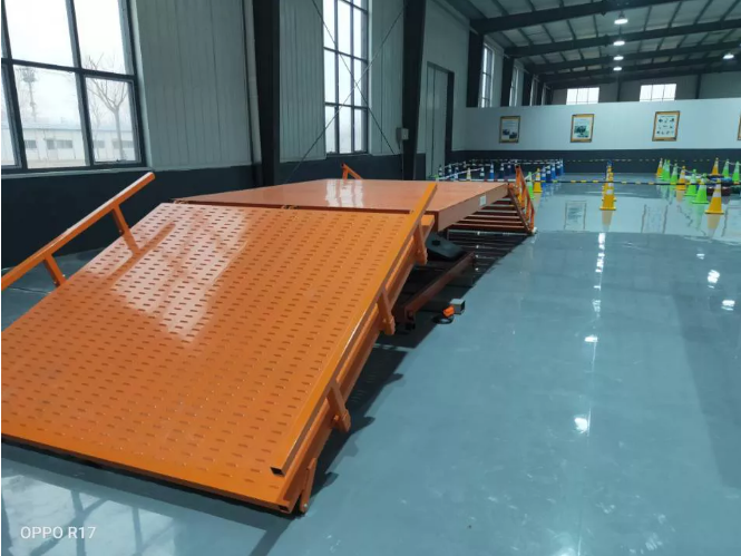 特种机器人爬坡性能检测装置可用于各种特种机器人爬坡、侧倾倒、爬楼梯的性能测试。表面烤漆,整体防锈。整体分为两侧不同的测试板块,一侧为爬坡与侧倾倒测试板,表面为标准防滑板,防滑板底部有方管加固架,保证板面强度。 另一侧为爬楼梯测试板,台阶尺寸根据相关检测标准制定。中间为可升降平台,可调节不同的高度,从而满足两侧边测试板尺寸要求。