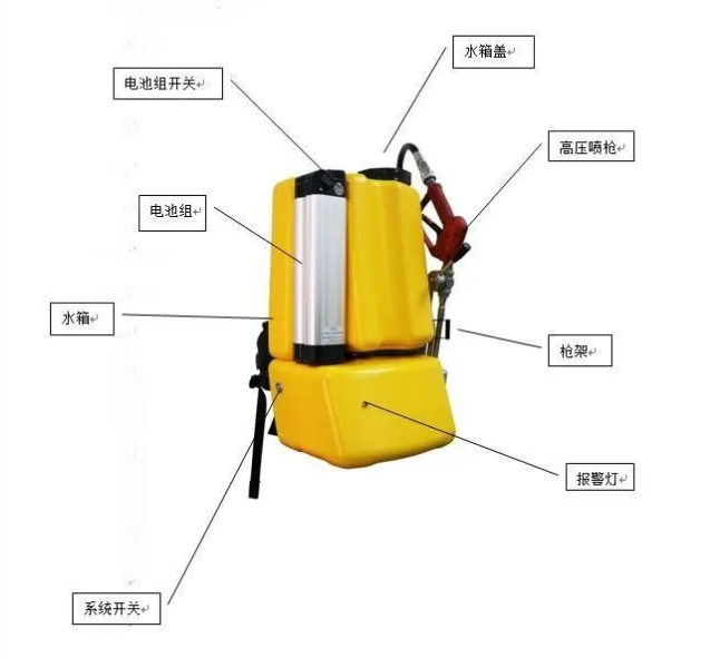 1、采用锂电池作为能量来源的可伸缩风力灭火机;