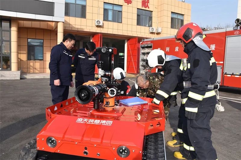 “新战友”上岗后如何与队伍形成水乳交融的战术配合?中心组织各救援站业务骨干理论、实操双管齐下,加快形成人机结合实战能力。针对所属辖区特点以及应急预案组织课题研讨和难点交流并制定问题清单,邀请厂家技术人员现场培训、解疑释惑,逐步学深学透系统原理,掌握操作、保养方法。与此同时,将新装备有效融入练兵计划中,针对主要性能指标开展专攻精练,逐步突破越障行驶、侦检传输、车机协同、精准射水等一系列技术要领,持续探索最优运行工况和最佳作战能力,真正形成具有“应急特色”的战术战法。