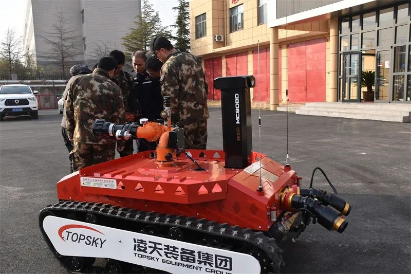 为提升队伍应急救援处置效率和装备水平,进一步规避行动风险,保障一线指战员在灭火救援行动中的生命安全。近日,在油田相关部门的大力支持下,3台防爆灭火侦查机器人在应急救援中心“入列”。