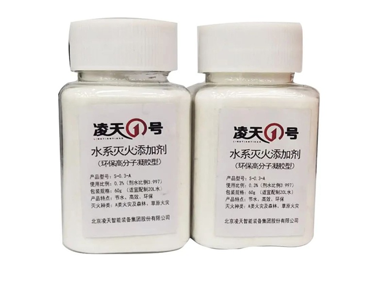 高分子灭火添加剂0.2%~0.4%的高分子凝胶灭火添加剂剂,3分钟之内就能形成凝胶灭火剂。将凝胶灭火剂均匀喷洒在固体可燃物上,就能立即在物体表面形成较厚的凝胶薄膜,它能隔绝空气、冷却物体表面、消耗大量的热,起到很好的阻火和灭火的效果,可有效扑灭森林、草原以及城市A类(固体可燃物)火灾。吸水性树脂燃烧后产生的二氧化碳和水蒸气不助燃,无毒性。