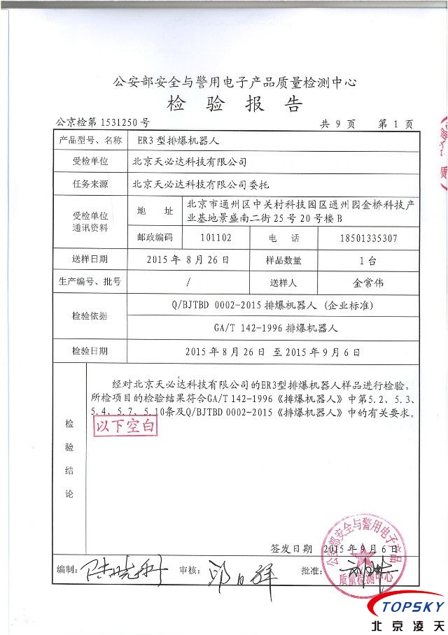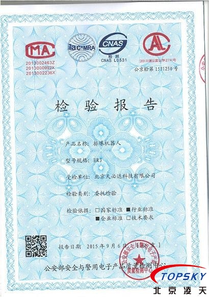 ER3排爆机器人取得公安部检测报告