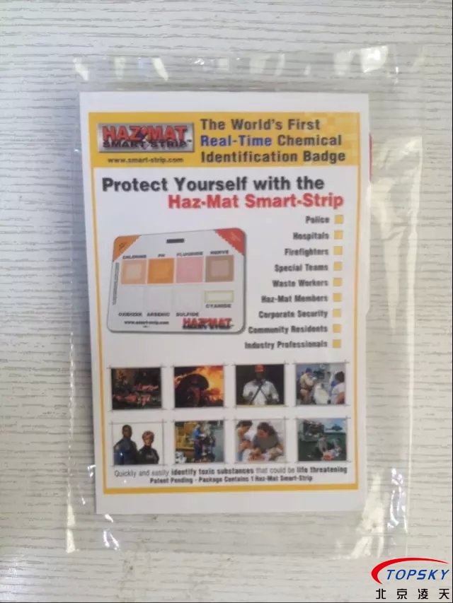 l 经特殊设计的指示贴片可检测到多达八种化学成分包括氯气,氟化物,神经毒气,氧化剂,砷,硫化氢,氰化物,酸碱度;