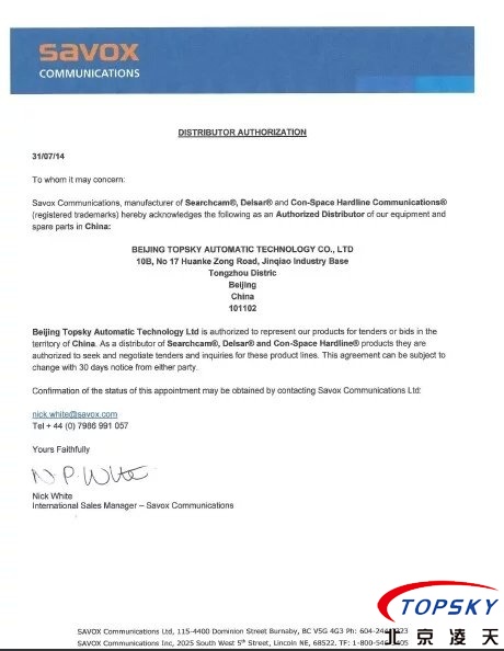 北京凌天成为美国SAVOX公司视频\音频生命探测仪代理商