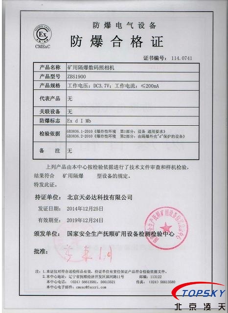 ▲12、提供煤安标志证书、矿山防爆证书(Exd I Mb),化工防爆证书(Exd IICT4 Gb )证书原件。