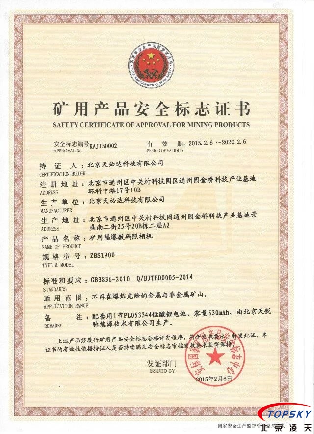 同时具备化工防爆、煤矿防爆、煤安认证等权威认证,保证设备的安全性.