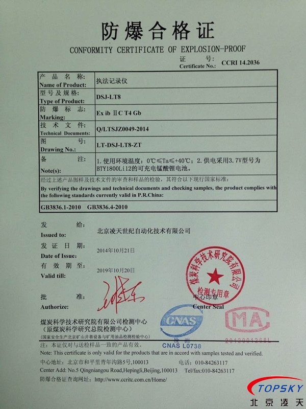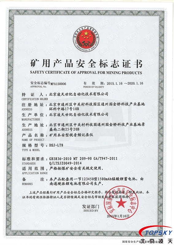 DSJ-LT8防爆执法记录仪取得煤安认证