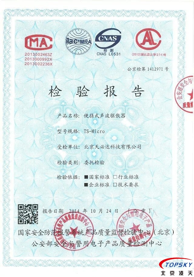 TS-Micro便携式噪声驱散器通过公安部权威机构检验
