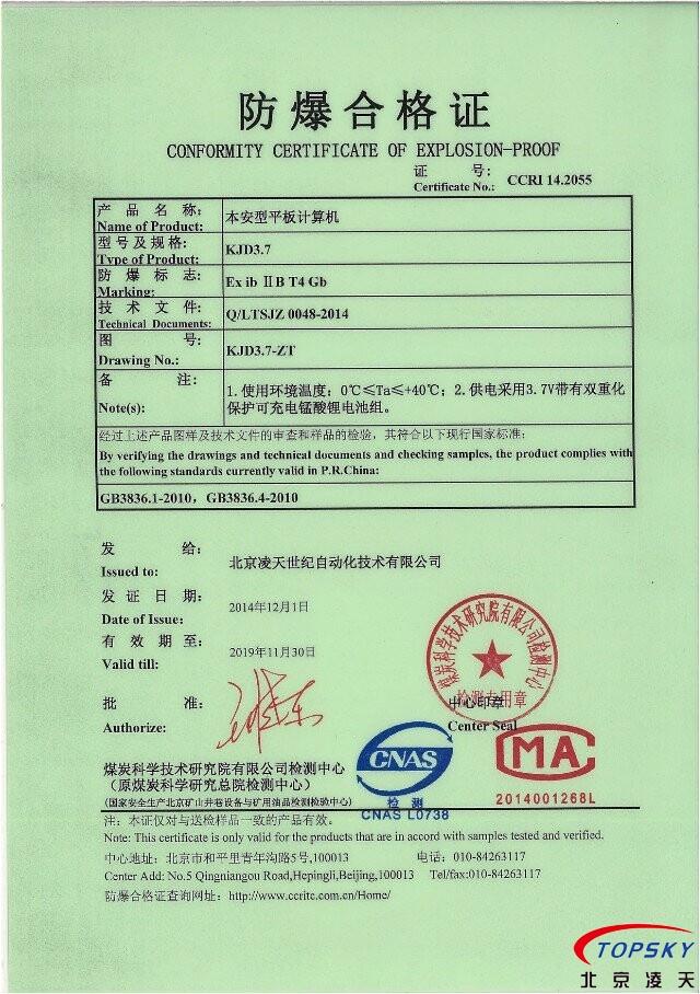 【云安通】KJD3.7防爆移动执法终端(本安平板计算机) 技术完成单位:北京凌天世纪自动化技术有限公司 |