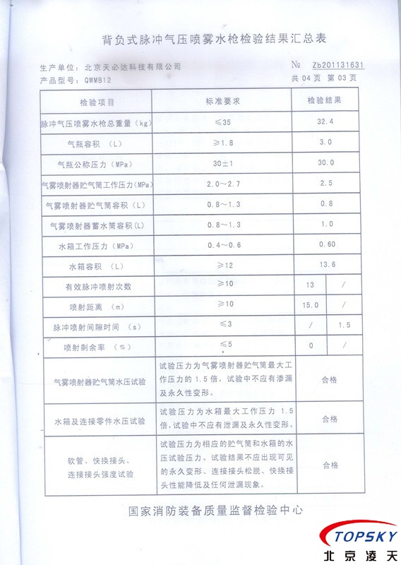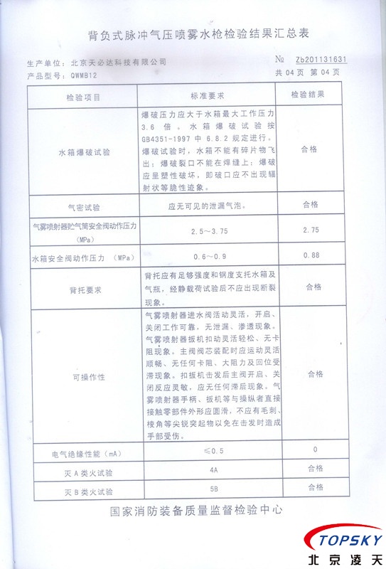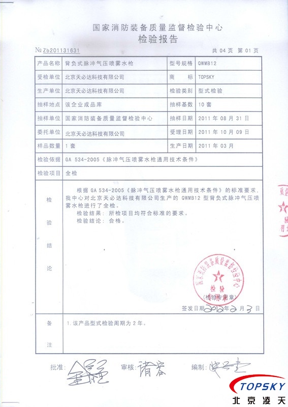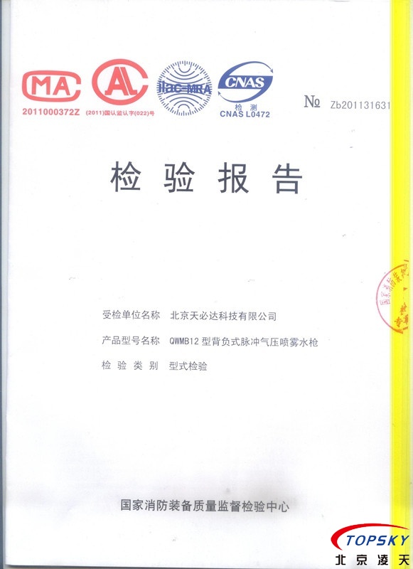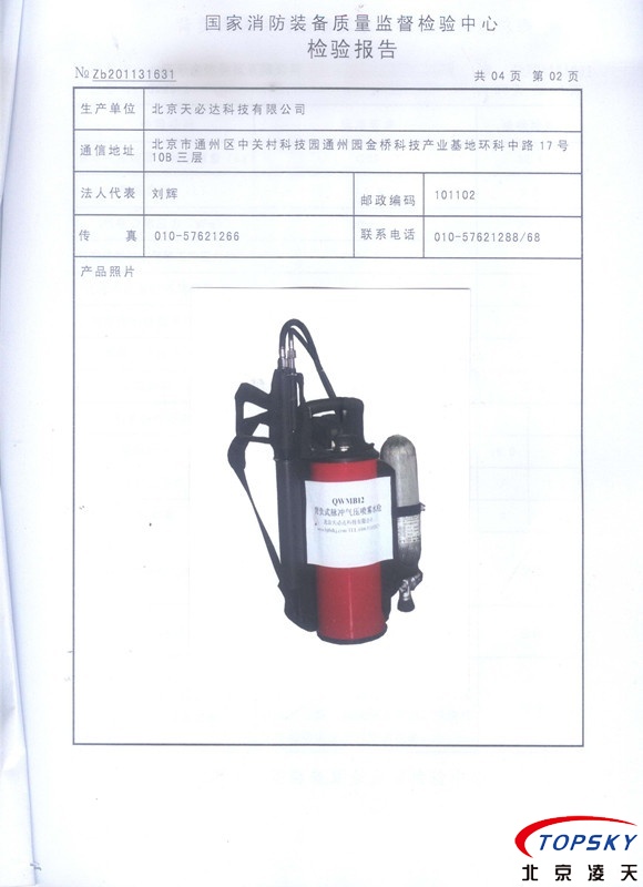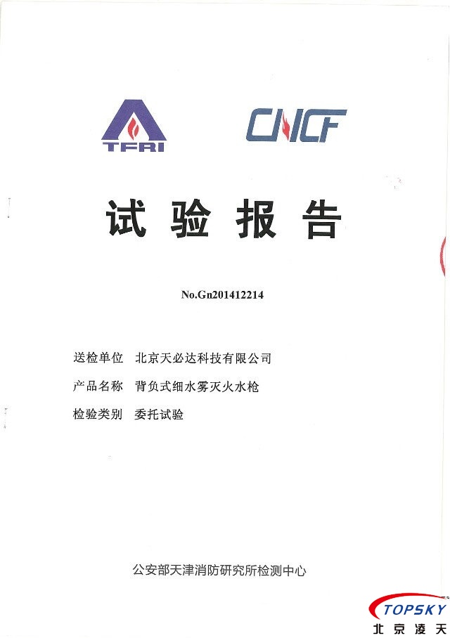 背负式细水雾灭火水枪 通过公安部天津消防所检验