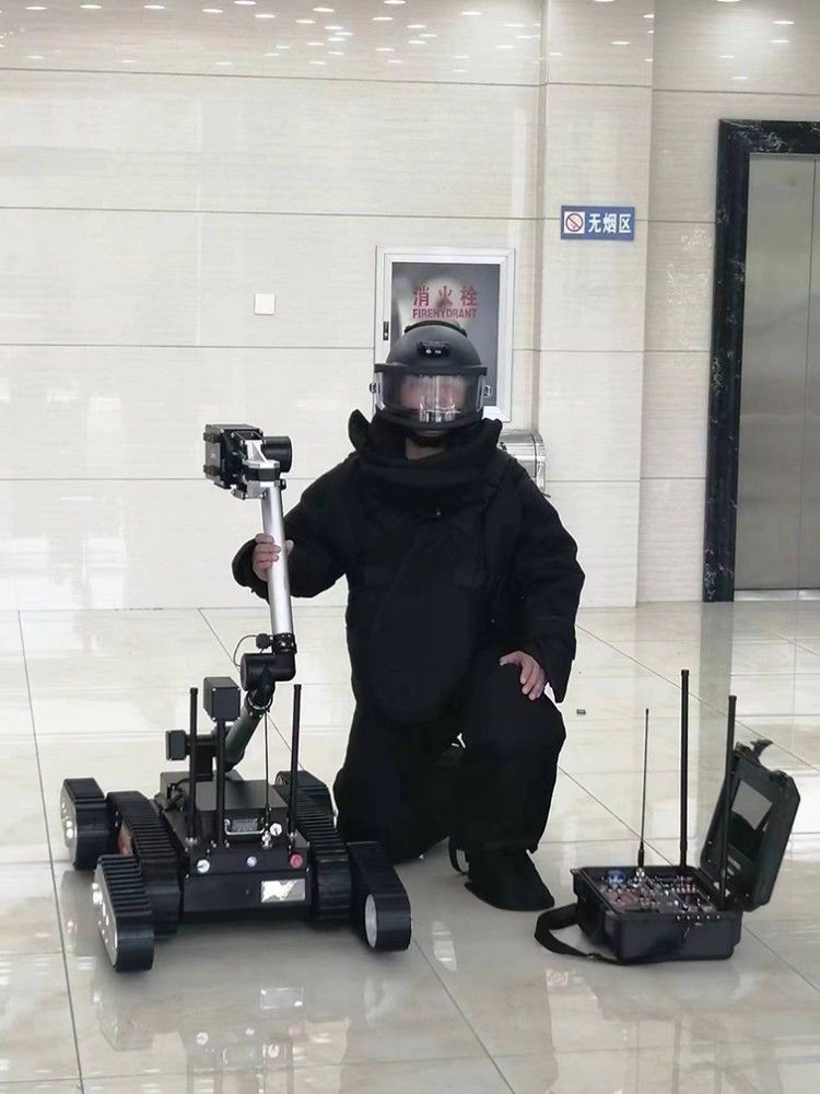 排爆机器人主要是用来处理爆炸物相关工作的排爆式机器人,也可用于侦察人难以达到的地形的一种机器人。7自由度排爆机械手能实现不同角度旋转,近端最大可抓举40KG的重物,小手爪可抓取5KG重物,机械臂可装载爆炸物销毁器,可现场摧毁爆炸物,履带底盘+前后双摆臂结构,能适应各种地形快速作战部署。