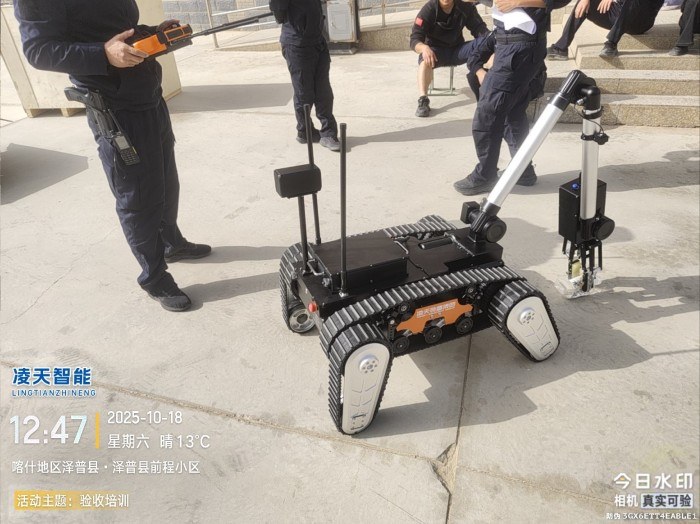 排爆机器人主要是用来处理爆炸物相关工作的排爆式机器人,也可用于侦察人难以达到的地形的一种机器人。6自由度排爆机械手能实现不同角度旋转,最大可抓举55KG的重物,机械臂装载爆炸物销毁器,可现场摧毁爆炸物,底盘采用履带+双摆臂结构,能适应各种地形快速作战部署。同时机器人配备有线控制可以网络干扰情况下通过有线远距离作业。排爆机器人可与配件一同使用,例如销毁器,爆炸物的远程引爆控制系统等。