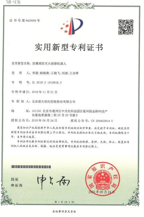 | 奖项类 | 2019获得第一届安全科技进步奖 | 防爆消防灭火侦察机器人 |