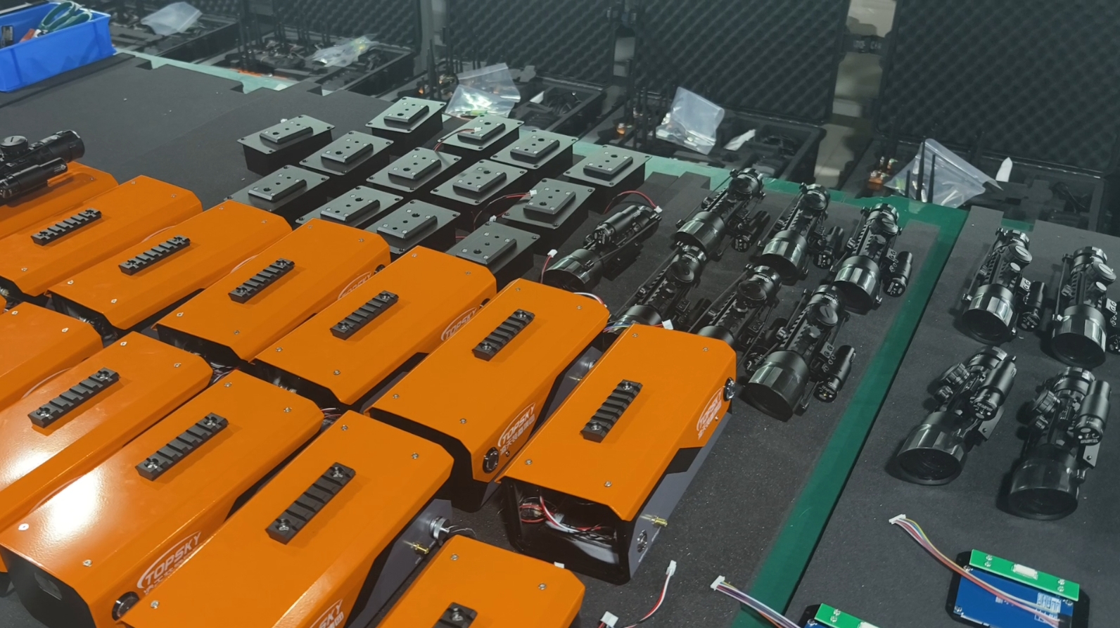 3、激光发射器监测距离105米,目标表面红色激光点显示。