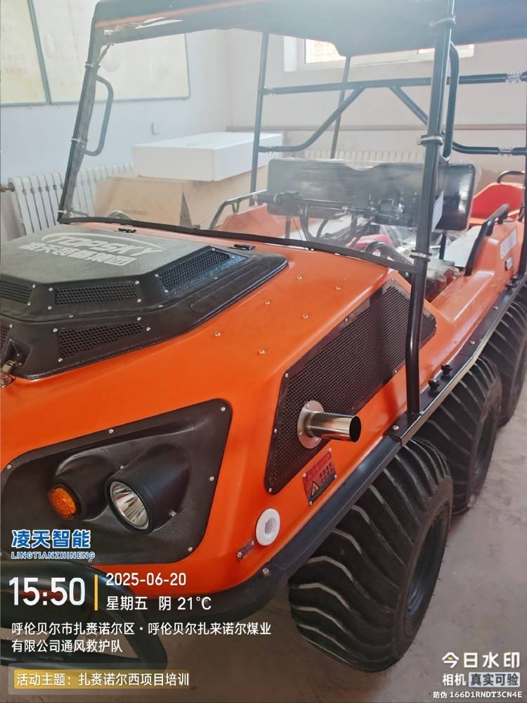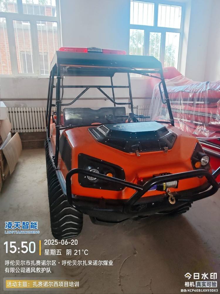 以完成可靠的野外应急救援为目的,该水陆两栖全地形车可提供一种安全的运输方式和可靠的运载平台,产品可以在山地环境、湿地环境、沼泽环境、水面环境、丛林环境等多种工作环境下,实现全天候连续作业。并且可以在灾害现场巡逻勘察、运送受伤人员、并有效实施援救。