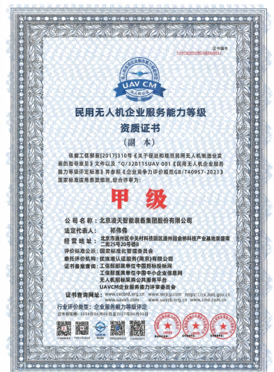 | 资格类 | 民用无人机企业服务能力等级资质证书(甲级) | |