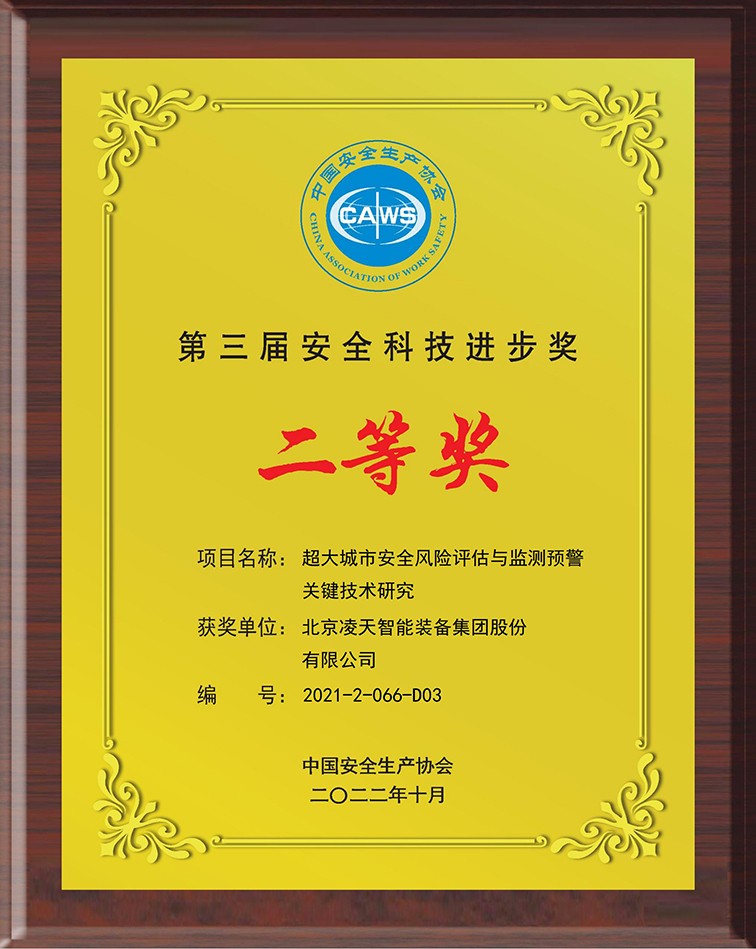| 奖项类 | 第三届安全科技进步奖二等奖 | 超大城市安全风险评估与监测预警关键技术研究 |