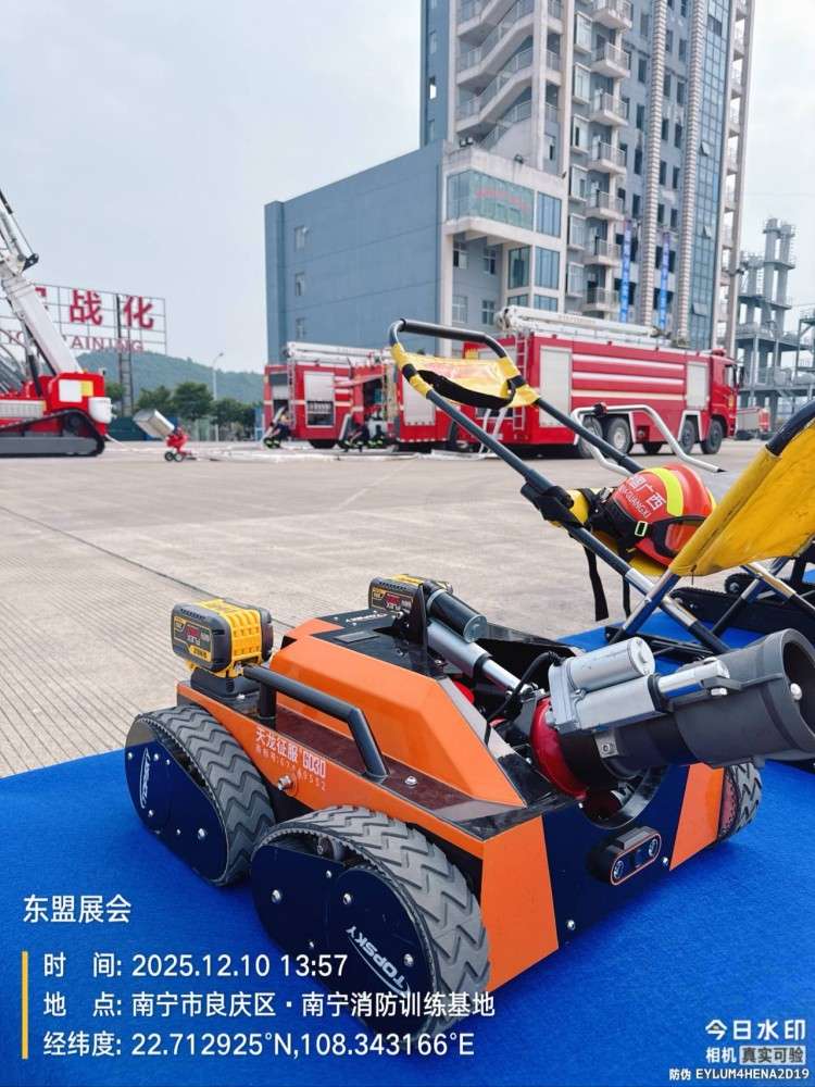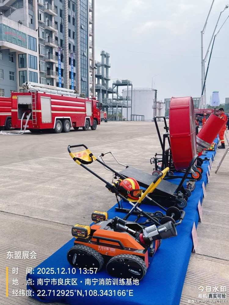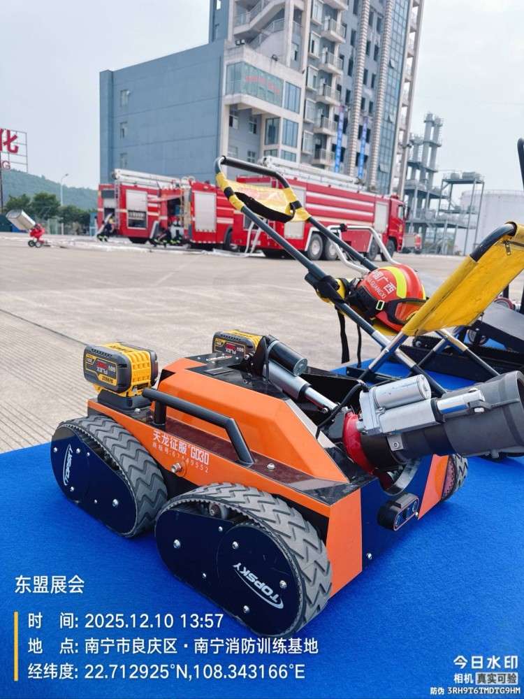 随车速攻机器人便携式新能源车灭火机器人是我公司适应消防特殊的工作环境开发出来小型消防机器人,重量轻,便于携带,操作简单使用人员只需简单培训即可熟练操作。可使用于各种大型石油化工企业,隧道、地铁等不断增多的油品燃气、毒气泄漏爆炸、隧道、地铁坍塌等灾害隐患多发地,灭火机器人在抢险救援中发挥举足轻重的作用,主要替代消防员在危化火场或浓烟火灾现场救援的专用设备。