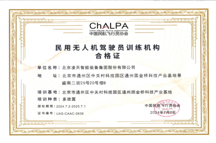 | 资格类 | 民用无人机驾驶员训练机构合格证(北京凌天) | |