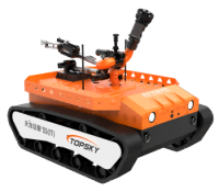 主要功能:履带式防爆机器人底盘采用锂电池电源作为动力源,使用无线遥控的方式远距离操控,可搭载形式多样,原地旋转设计可使得运更灵活;具备音视频侦察、有毒有害气体侦察、灾区环境侦察功能,对提高救援安全性、减少人员伤亡具有重要意义。